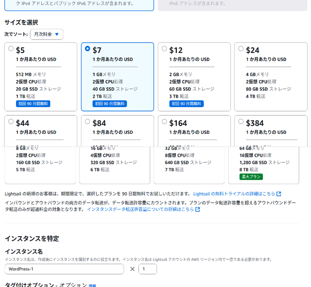 さっそく、料金比較します!私は以前までEC2のt2.microを使っていました。その時は月7000円ほどでした(円安やばい、、)。現在はLightsailの月7$のコースにしたら、およそ月1500円になりました!1$=150円計算です。